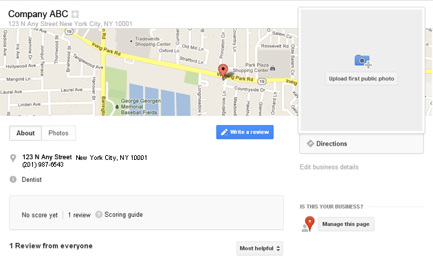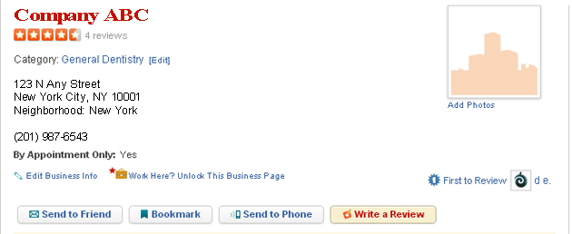 As you can see in the examples, wherever we have the business listed the address is always listed as 123 N Any Street New York City, NY 10001